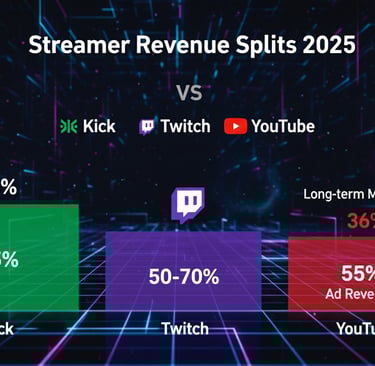 Twitch: El Rey Busca Mantener su Trono Twitch, el gigante histórico, se ha visto presionado a mejorar sus condiciones. Aunque la división estándar de ingresos por suscripciones sigue siendo de 50/50, la plataforma ha ampliado su programa "Partner Plus" para ofrecer un 70/30 a los streamers más grandes. En cuanto a los ingresos por publicidad, los creadores reciben un 55% de los mismos. La principal ventaja de Twitch sigue siendo la solidez de su sistema de bits y donaciones, que complementa las suscripciones y los anuncios. Sin embargo, para los streamers que recién comienzan, el camino para alcanzar los umbrales de monetización puede ser más largo.